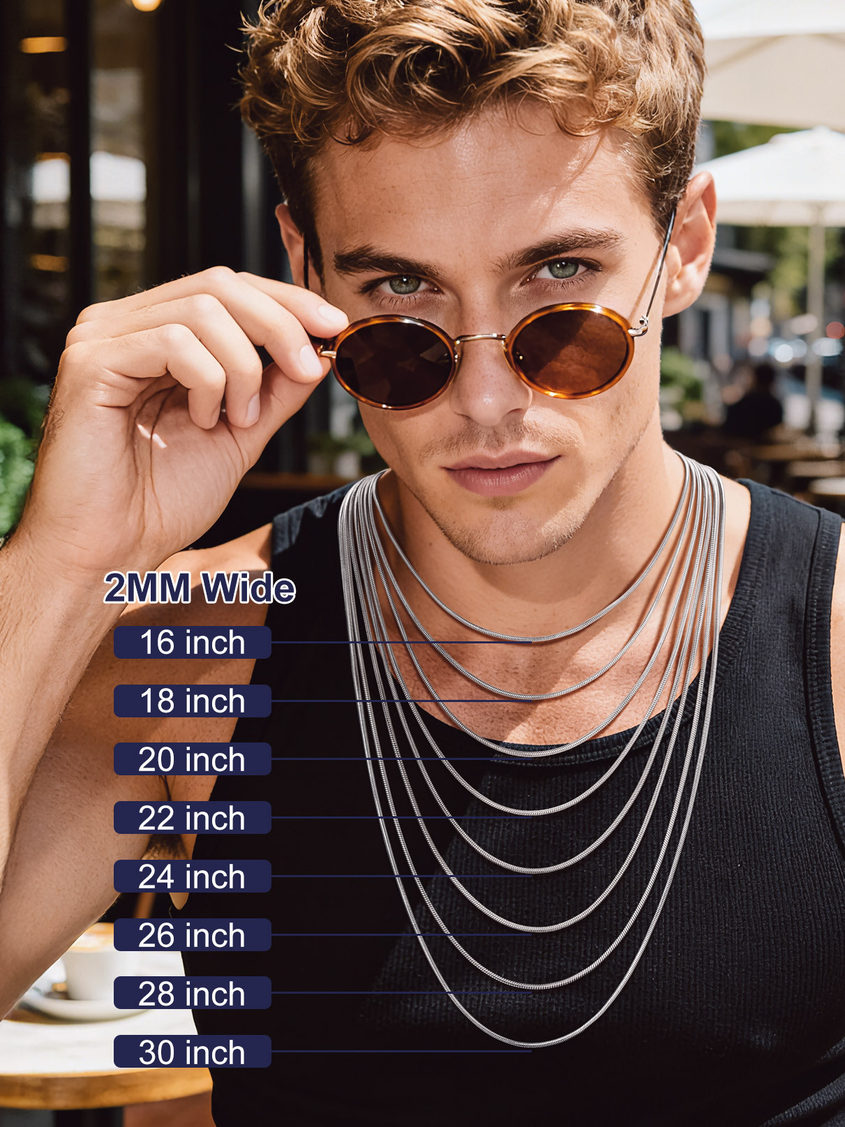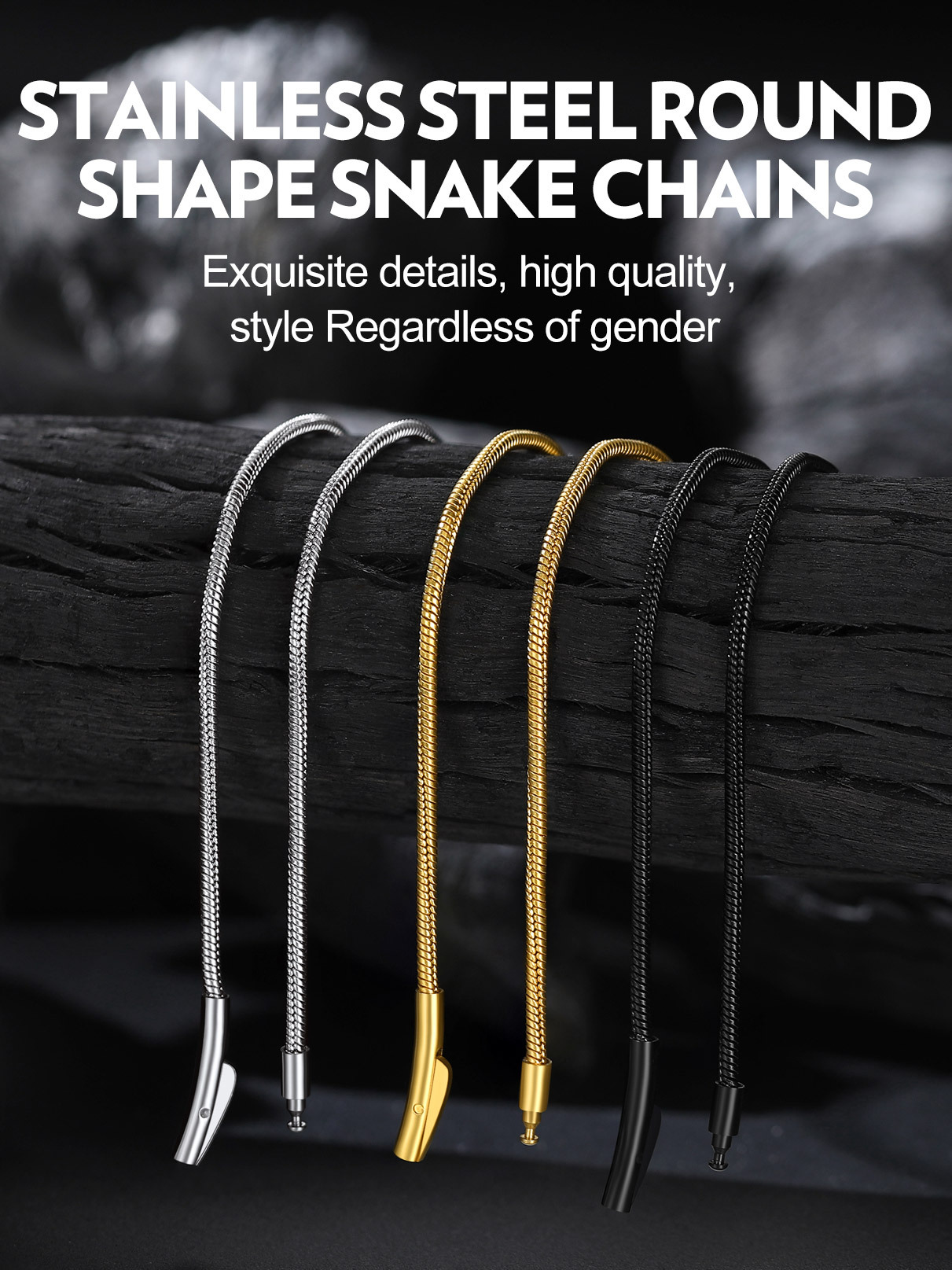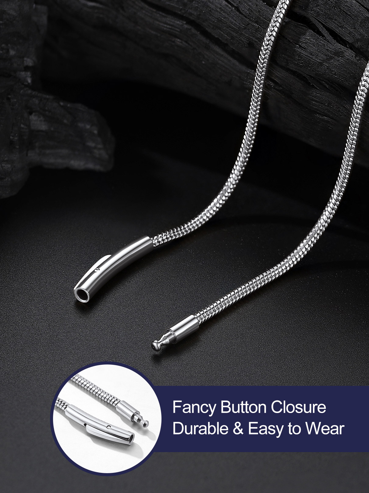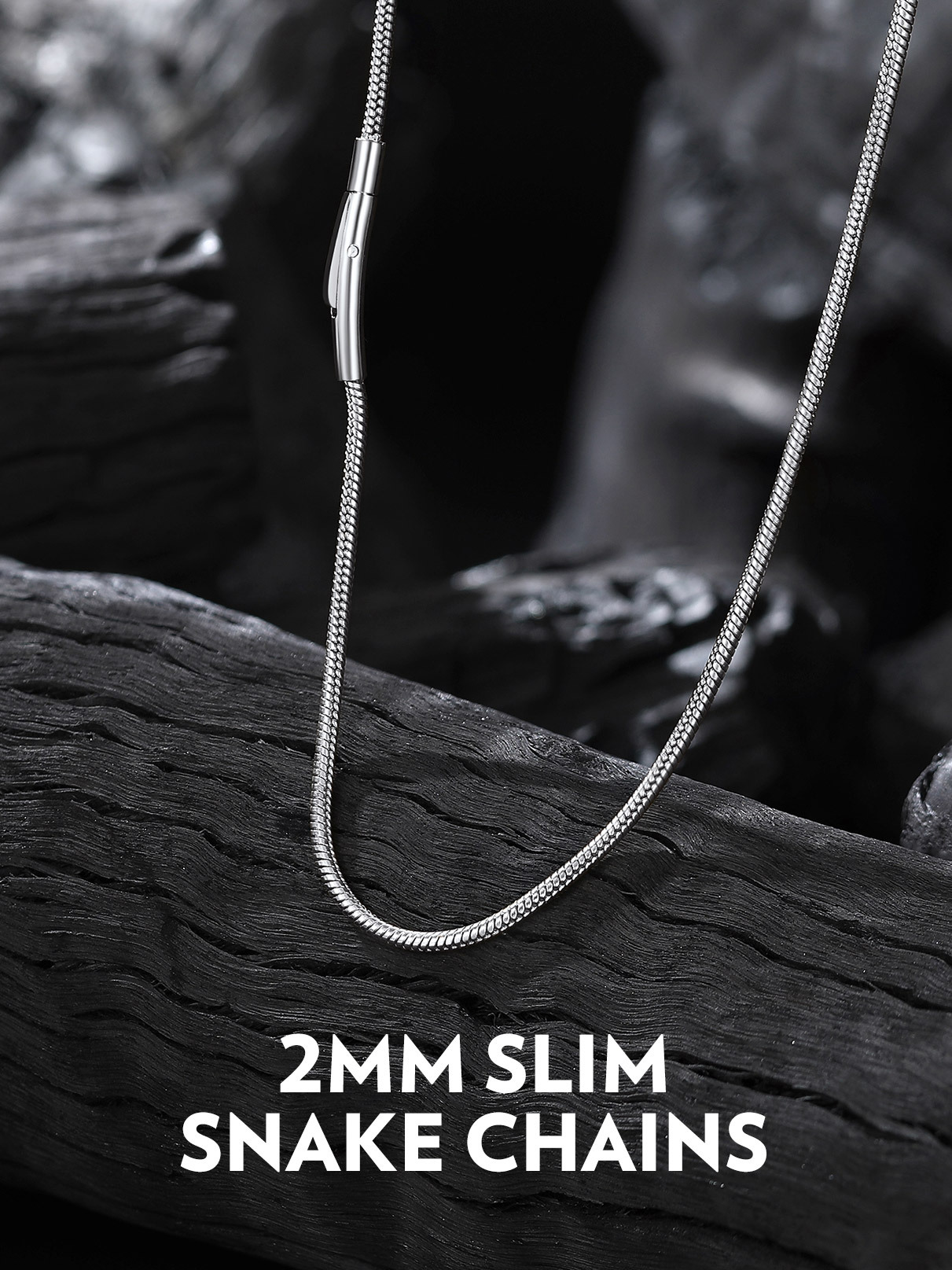 Our Slim Snake Chain Necklace features spring bukles,easy to wear on and take off. We have more available sizes to choose.Suitable for men or women.Made with durable 316L stainless steel,no color-fading,friendly to skin.