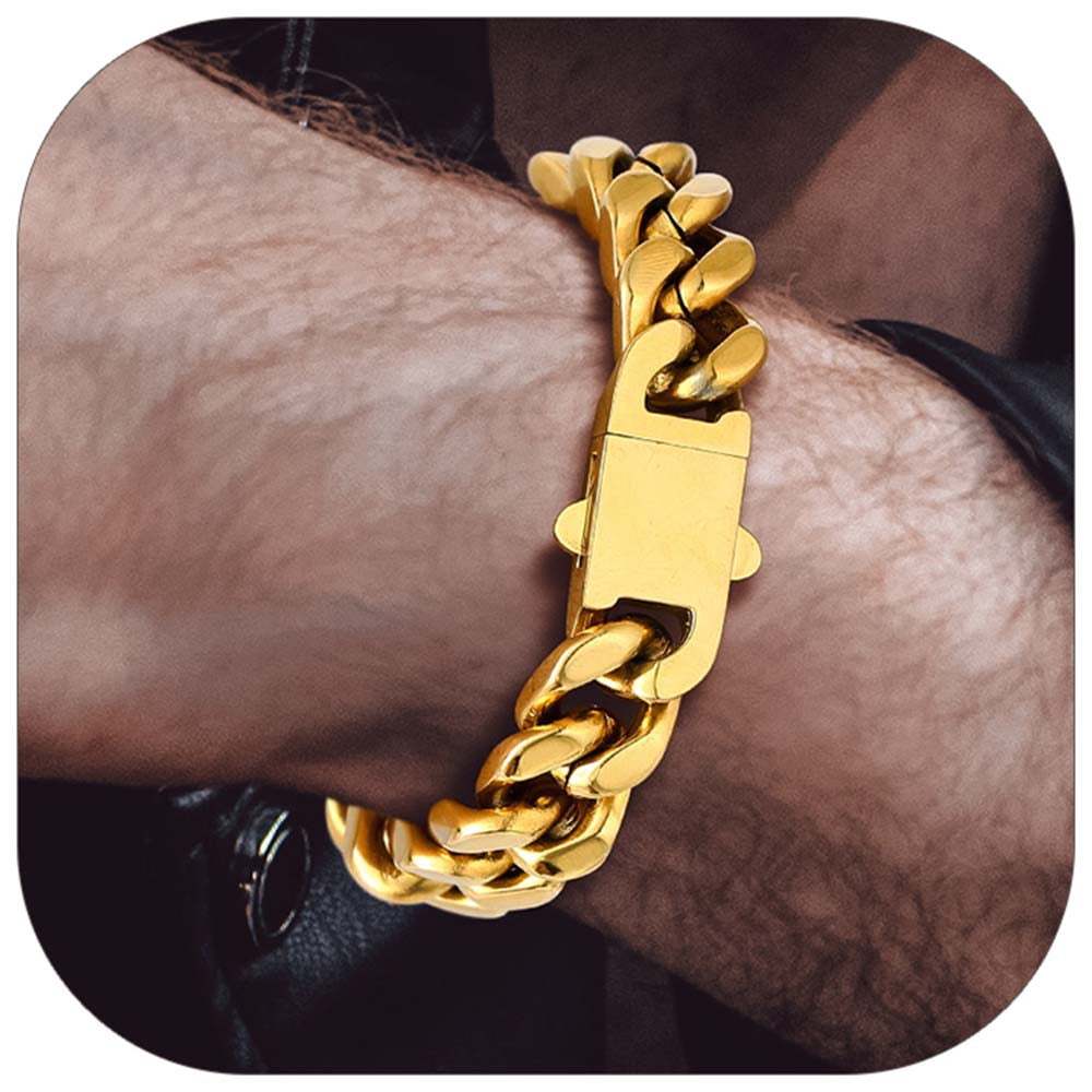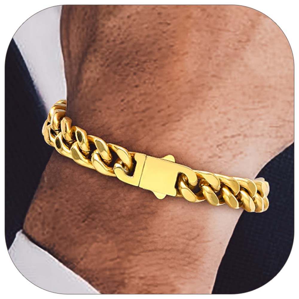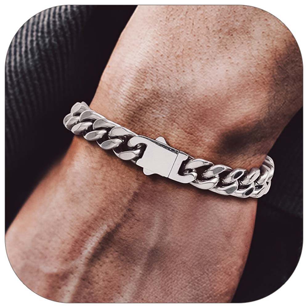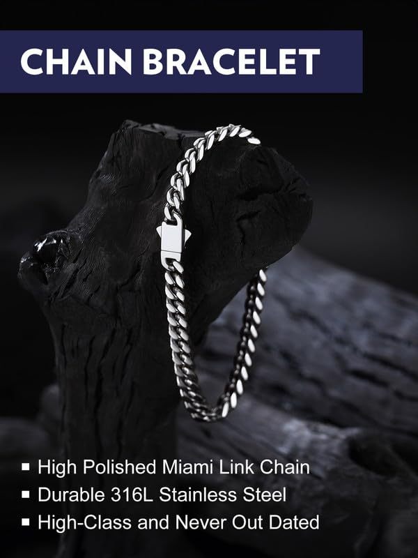 Our Miami Cuban Bracelet Chain features space-cutting cuban chain & stylish fold over clasp. We have more available sizes to choose.Suitable for men or women.Made with durable 316L stainless steel,no color-fading,friendly to skin.