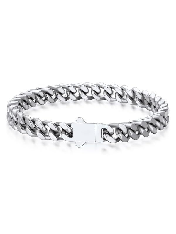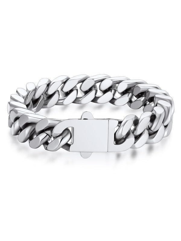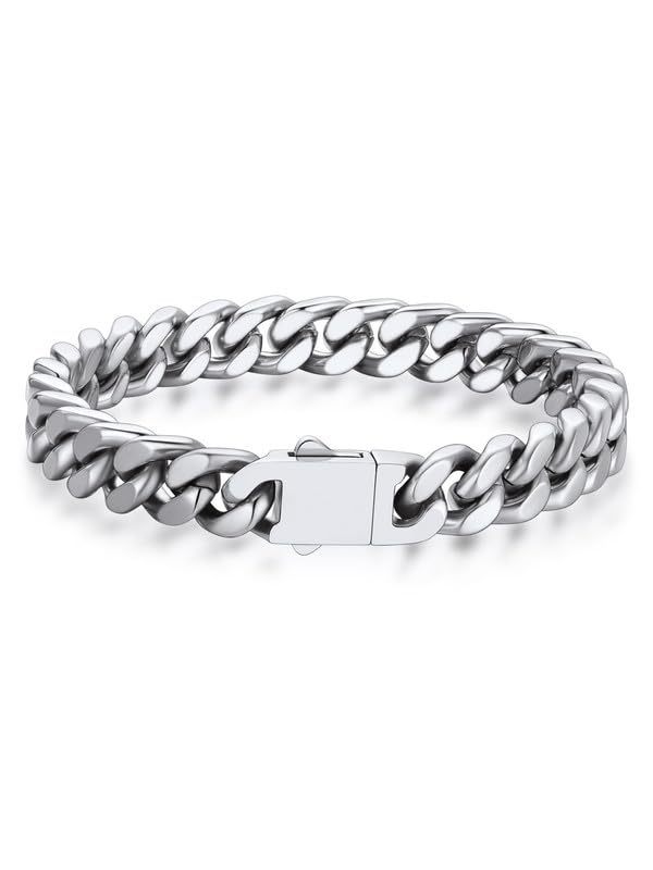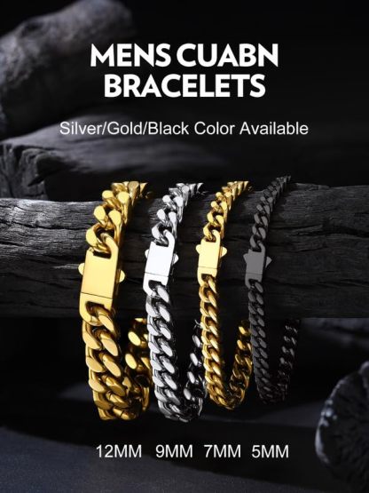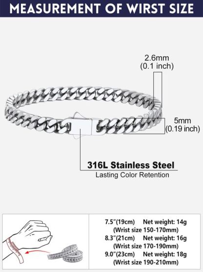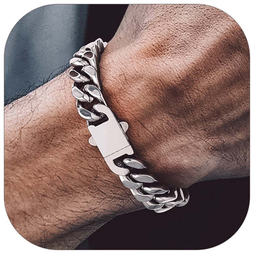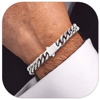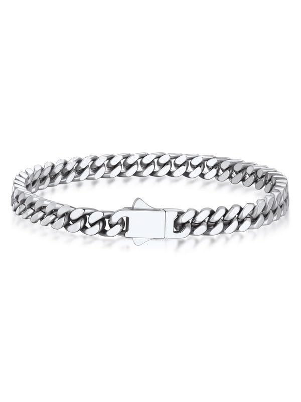 Our Miami Cuban Bracelet Chain features space-cutting cuban chain & stylish fold over clasp. We have more available sizes to choose.Suitable for men or women.Made with durable 316L stainless steel,no color-fading,friendly to skin.