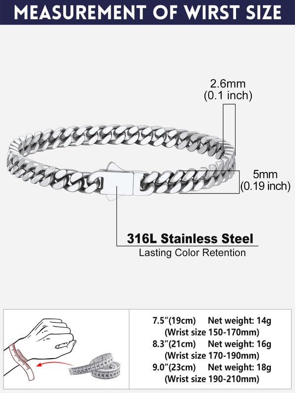 Bandmax 5MM Wide Cuban Chain Bracelet for Men Women Stainless Steel Hip Hop Biker Wristlet Anklet Chain Jewelry for Gift