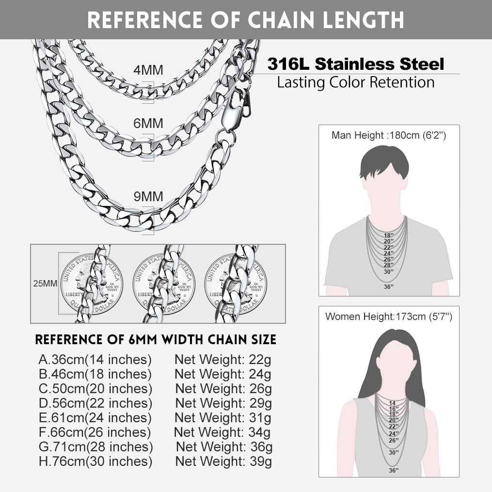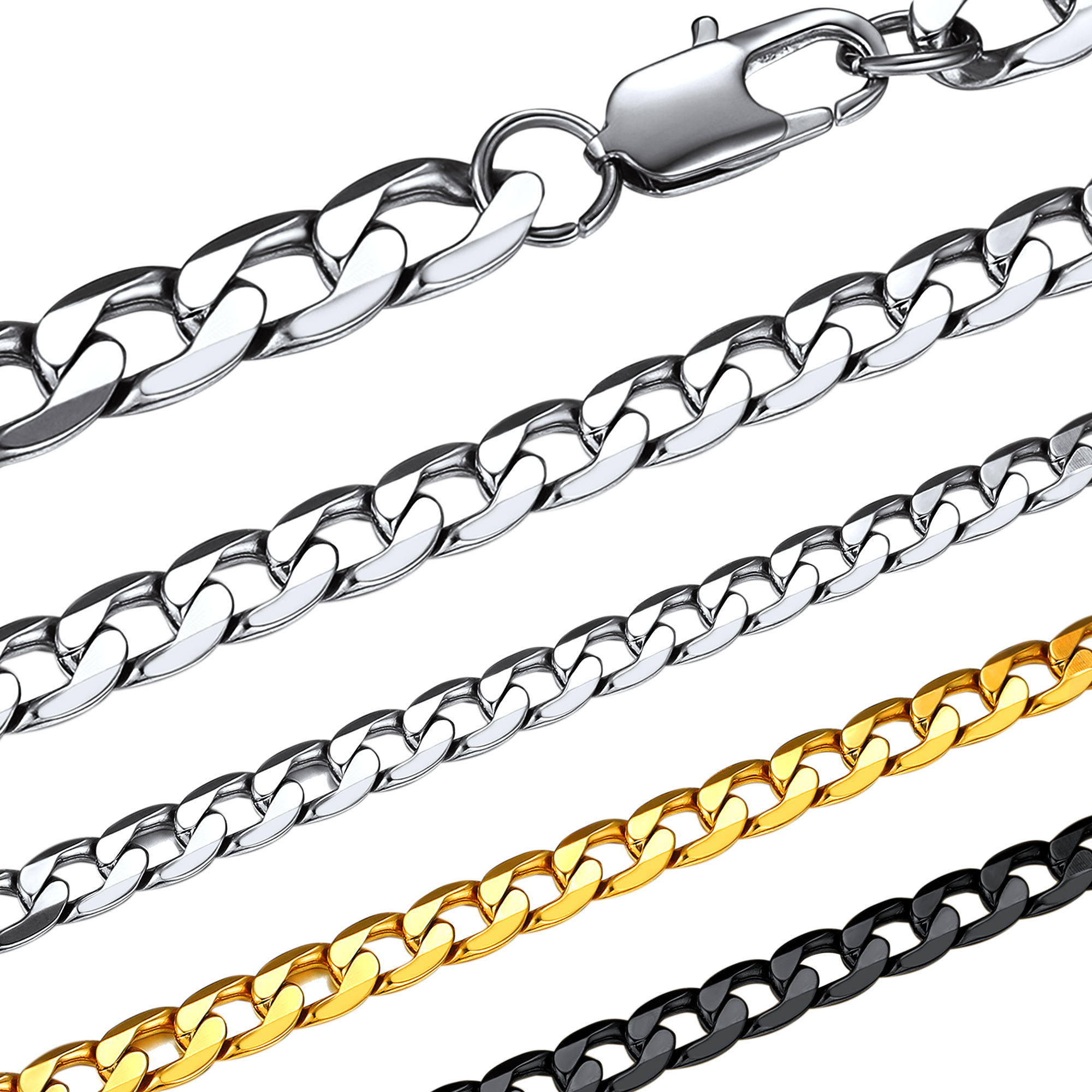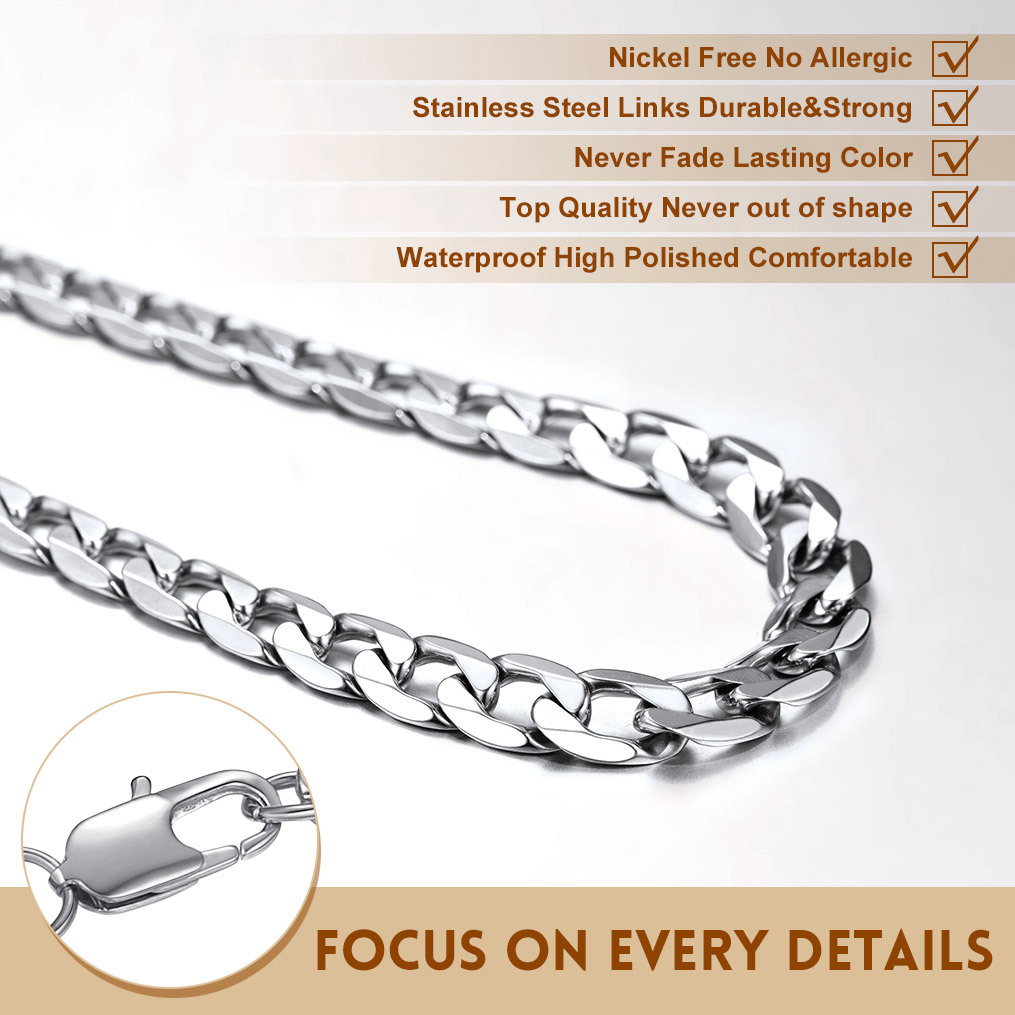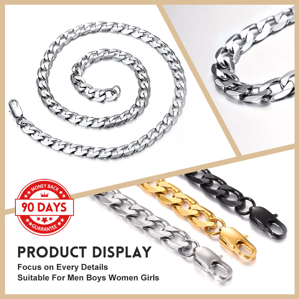 Our Flat Cuban Chain Necklace features space-cutting cuban chain & stylish lobster clasp. We have more available sizes and colors to choose.Suitable for men or women.Made with durable 316L stainless steel,no color-fading,friendly to skin.