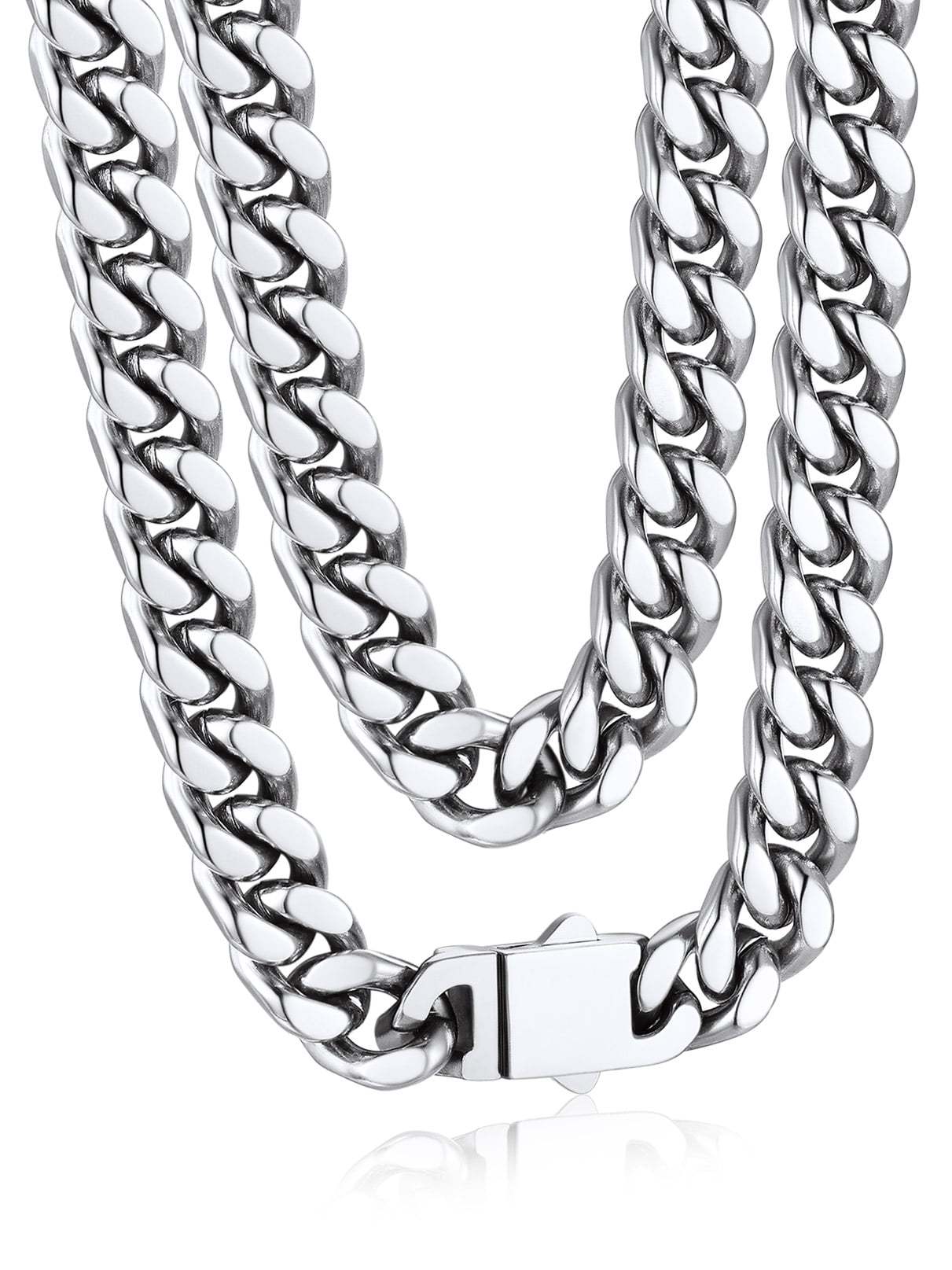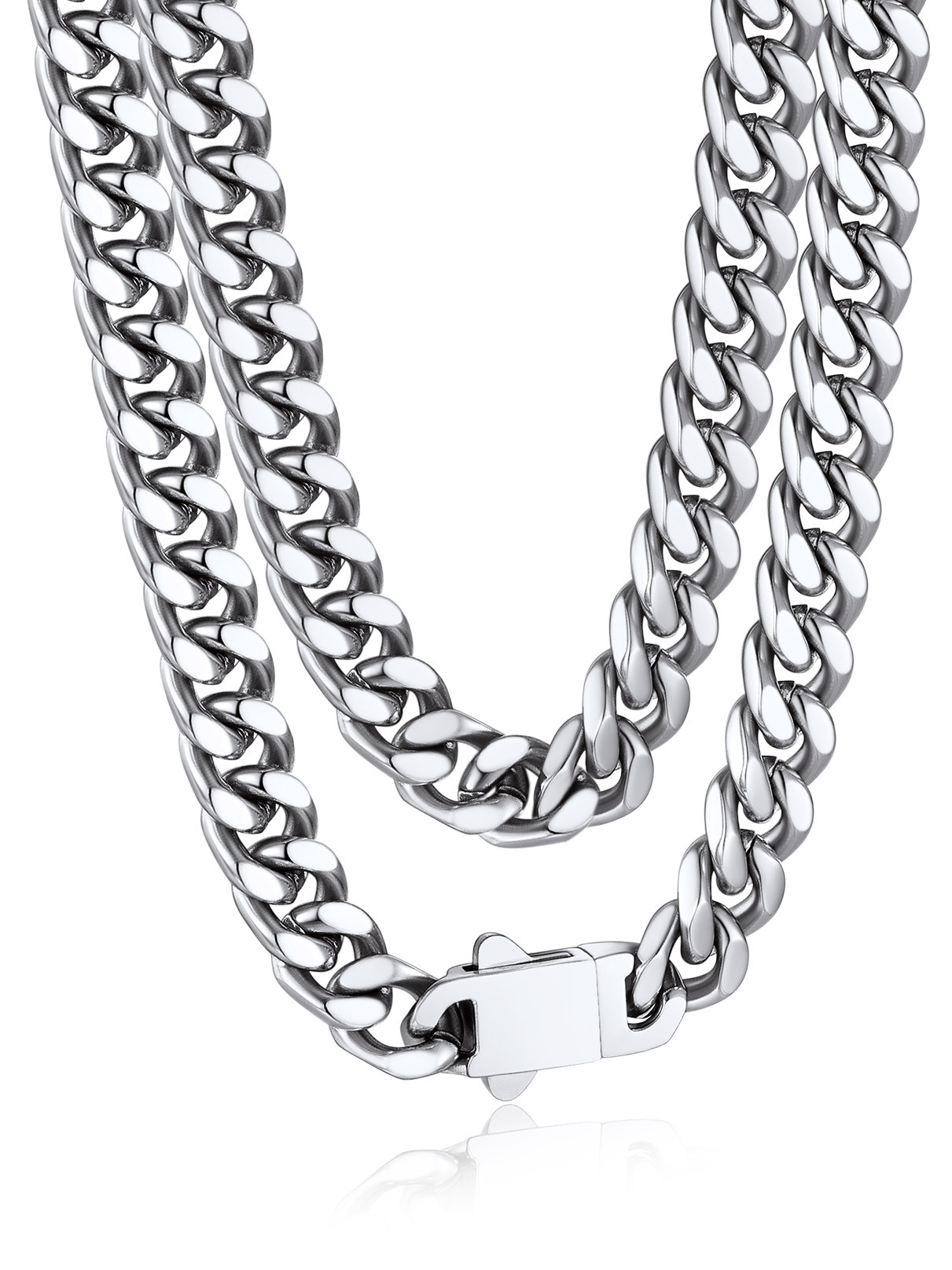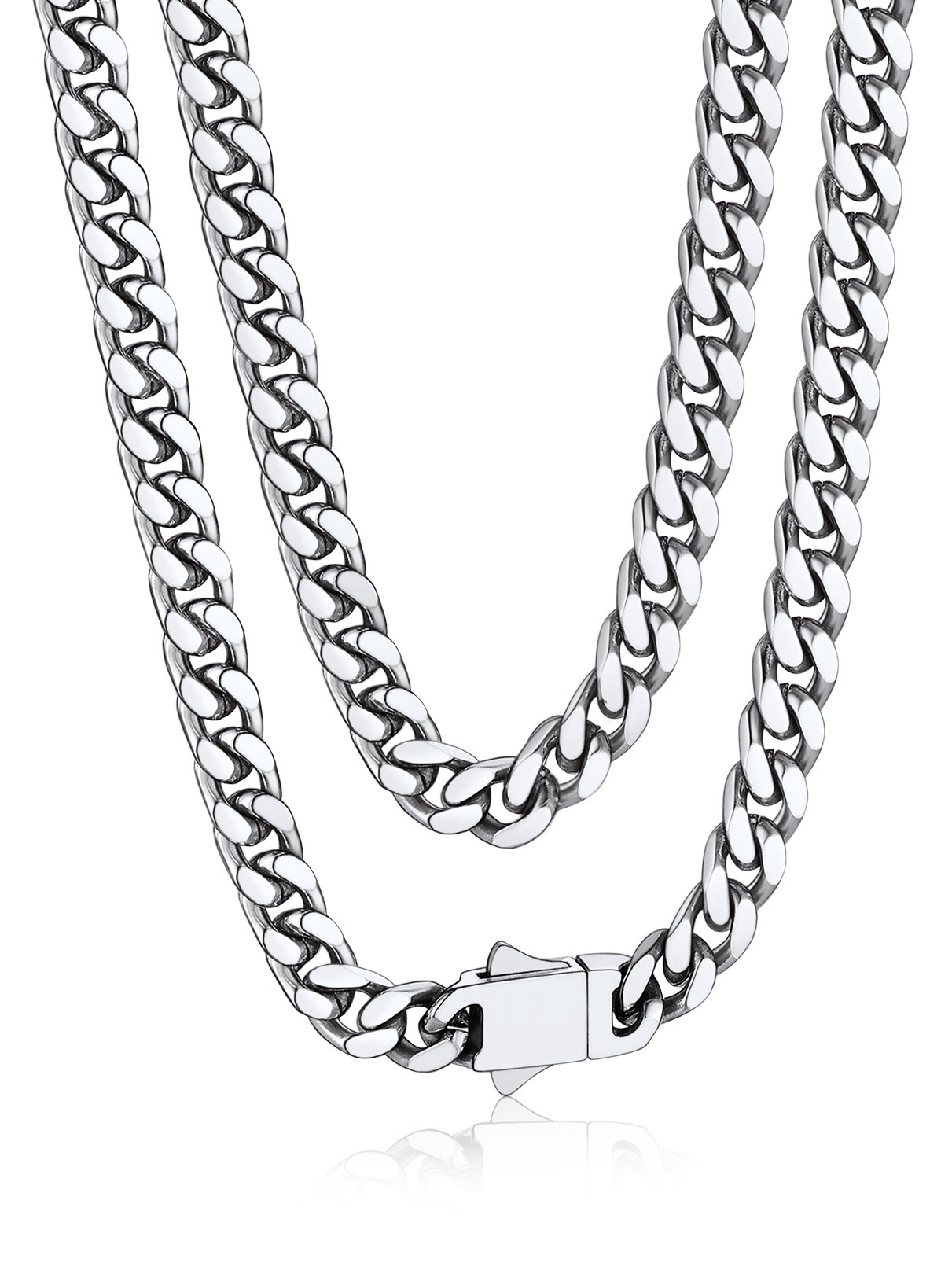 Our Miami Cuban Chain Necklace features space-cutting cuban chain & stylish fold over clasp. We have more available sizes to choose.Suitable for men or women.Made with durable 316L stainless steel,no color-fading,friendly to skin.