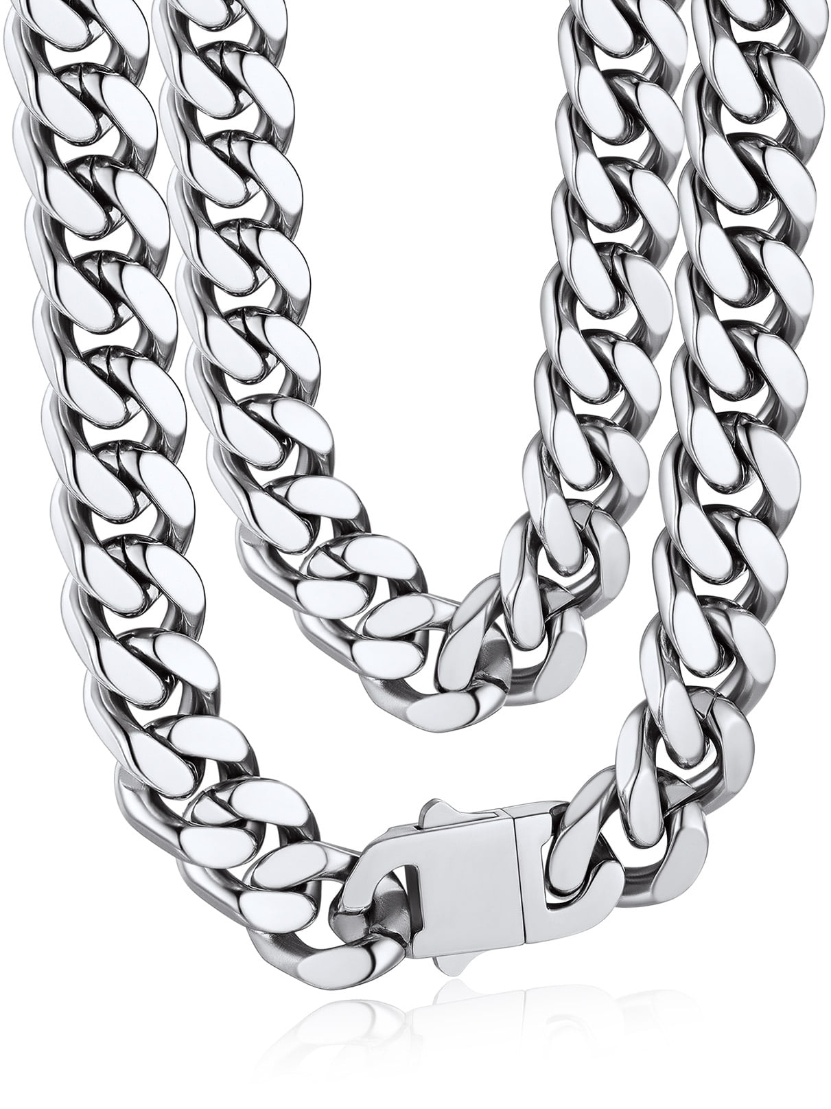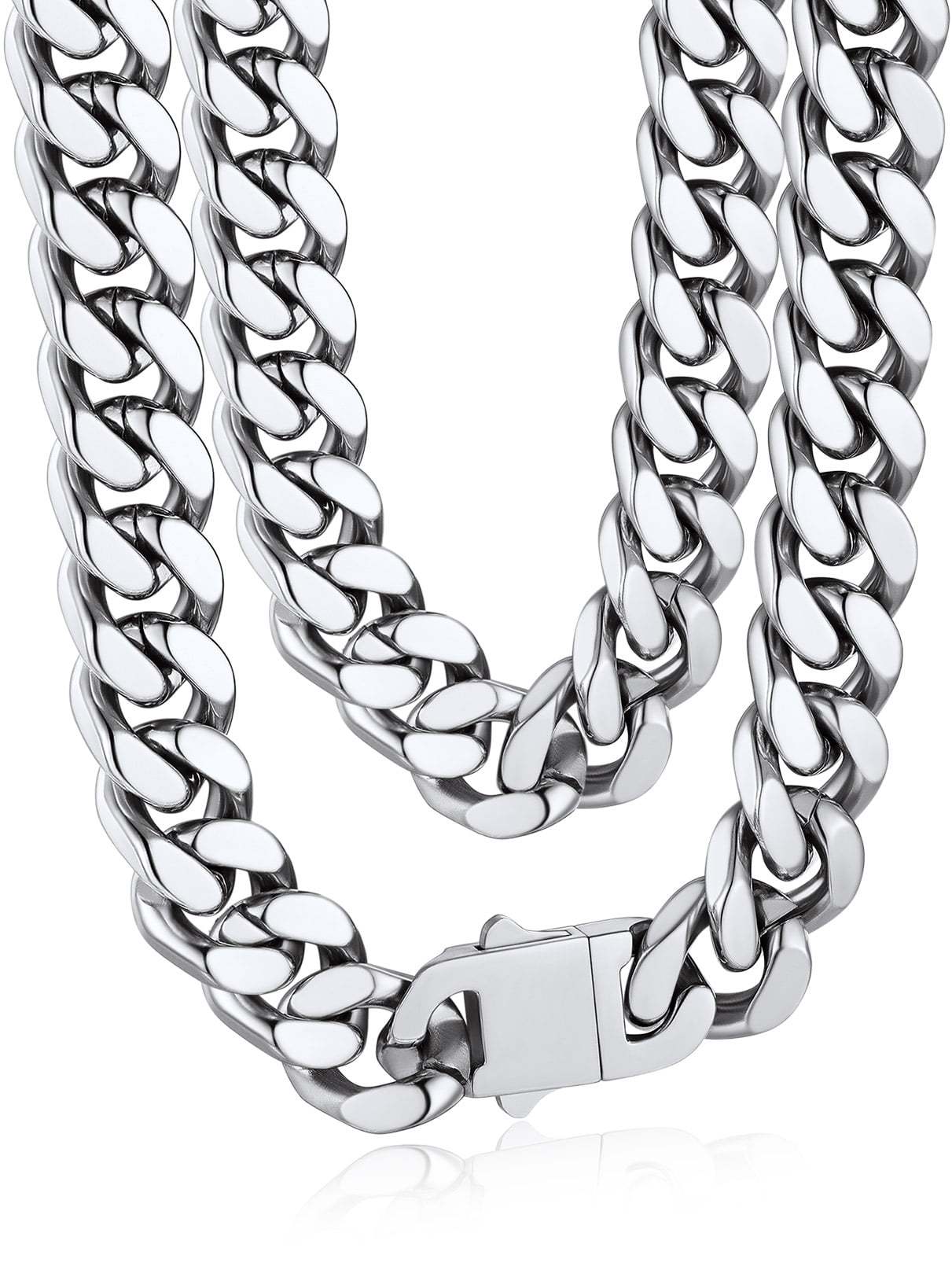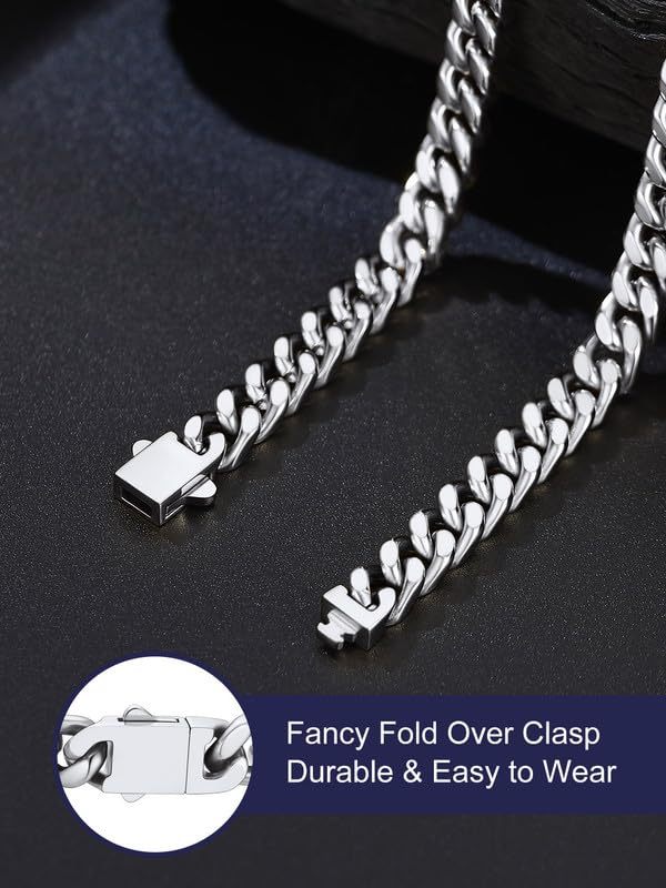 Our Miami Cuban Chain Necklace features space-cutting cuban chain & stylish fold over clasp. We have more available sizes to choose.Suitable for men or women.Made with durable 316L stainless steel,no color-fading,friendly to skin.