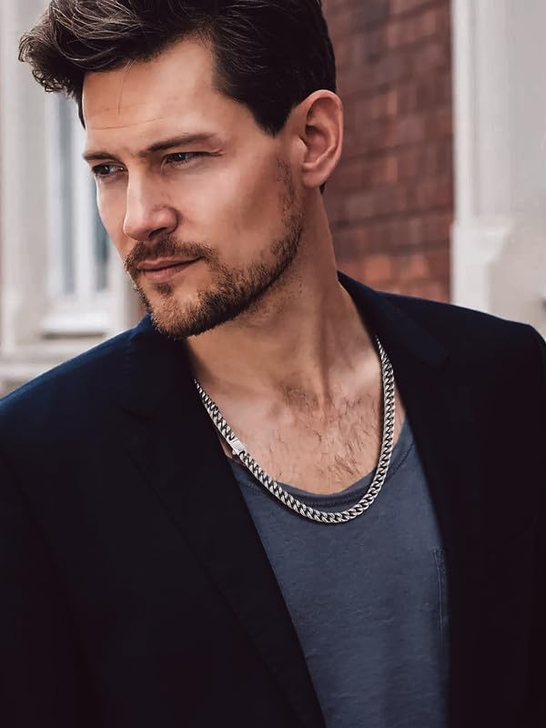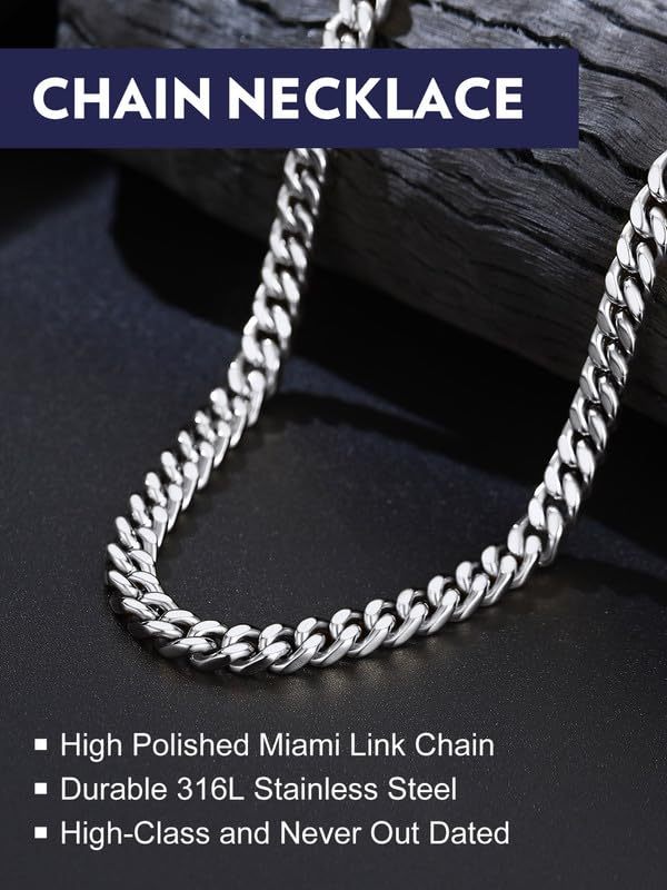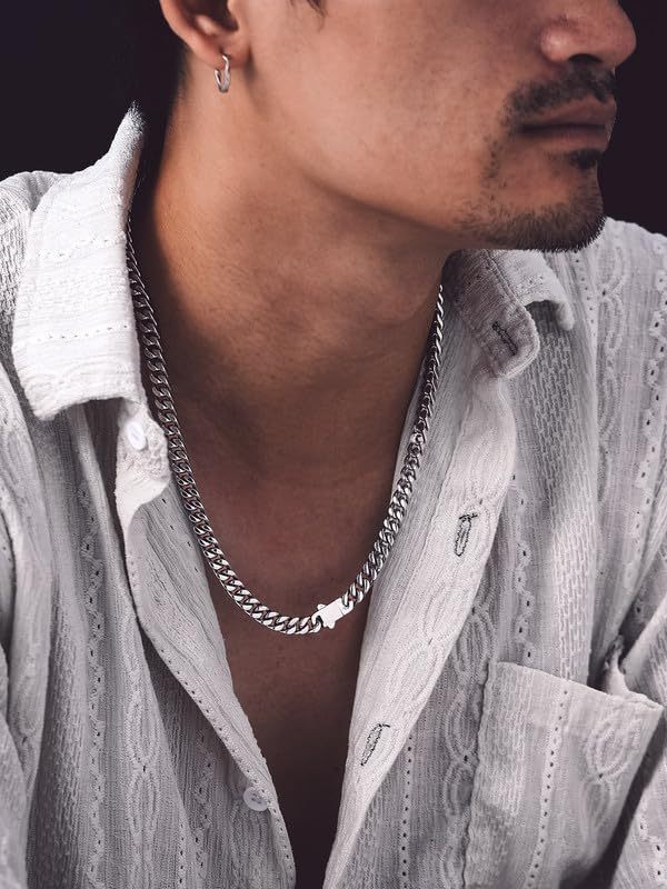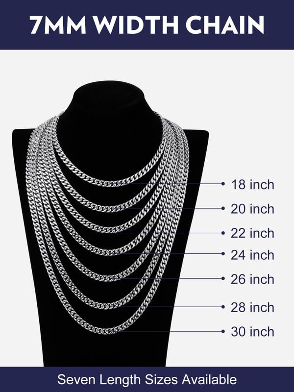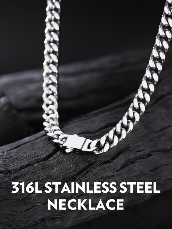 Bandmax 7MM Stainless Steel Mens Chain Necklaces Hip Hop Rock Miami Cuban Link Chain for Men 22 Inches Chunky Cuban Chain Men Jewelry for Gift