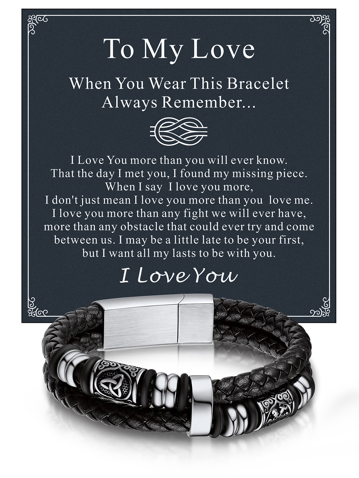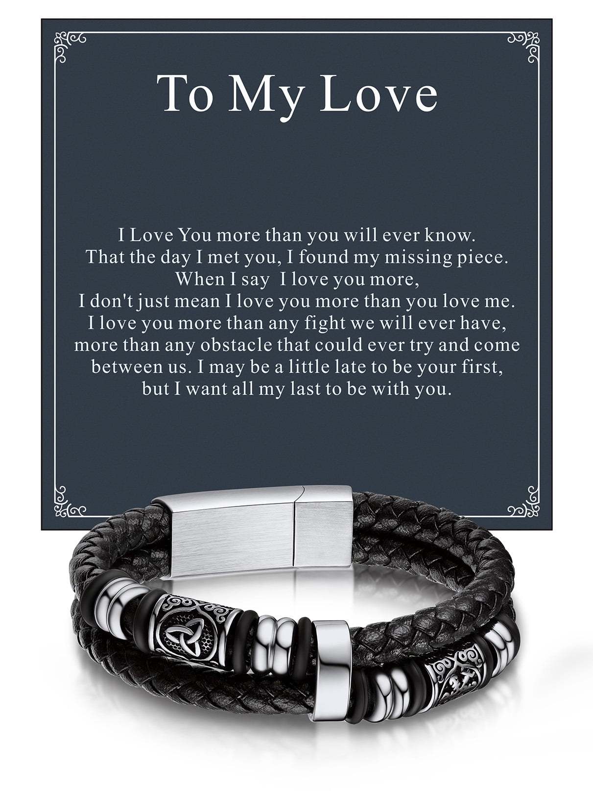 Nordic style design with Celtic Knot & Viking Compass,brings a good meaning of Norce. Comes with a delicated message card, these words are simple and not flowery, but they do move.It is meaningful gift for your love that expresses your love to him perfectly.