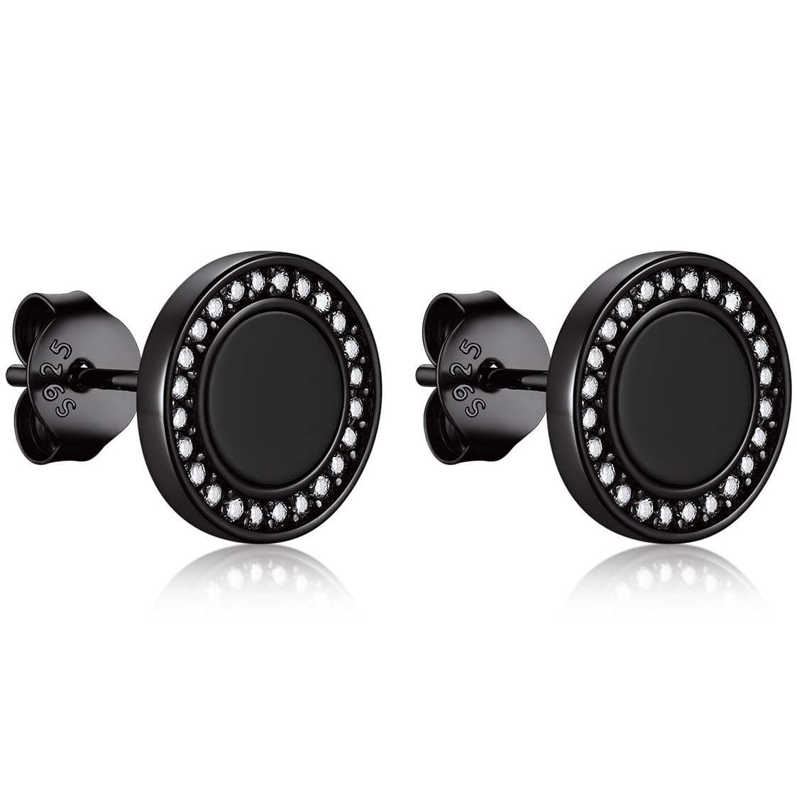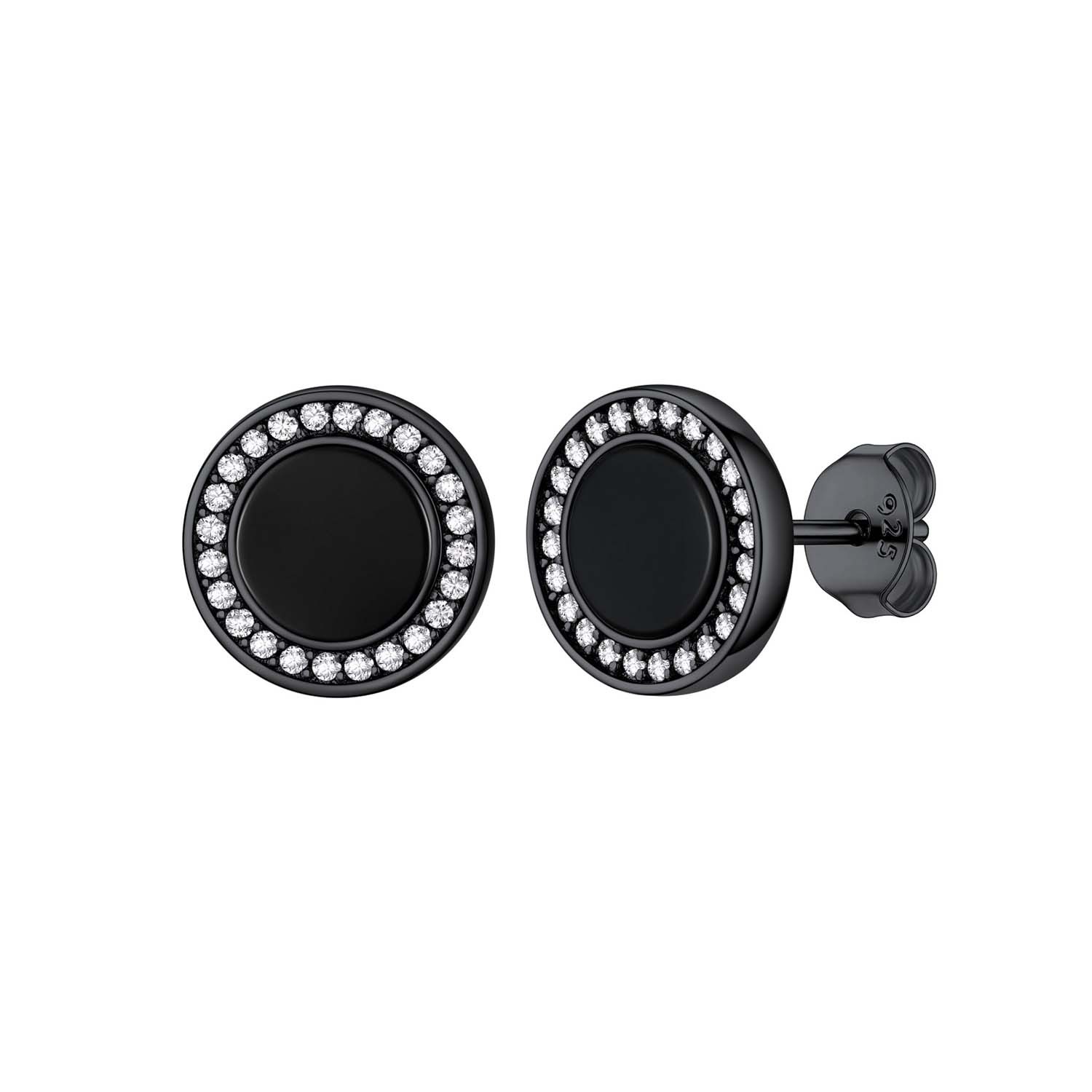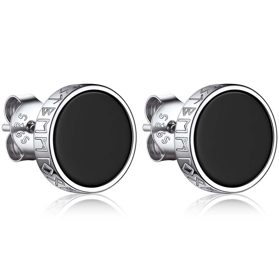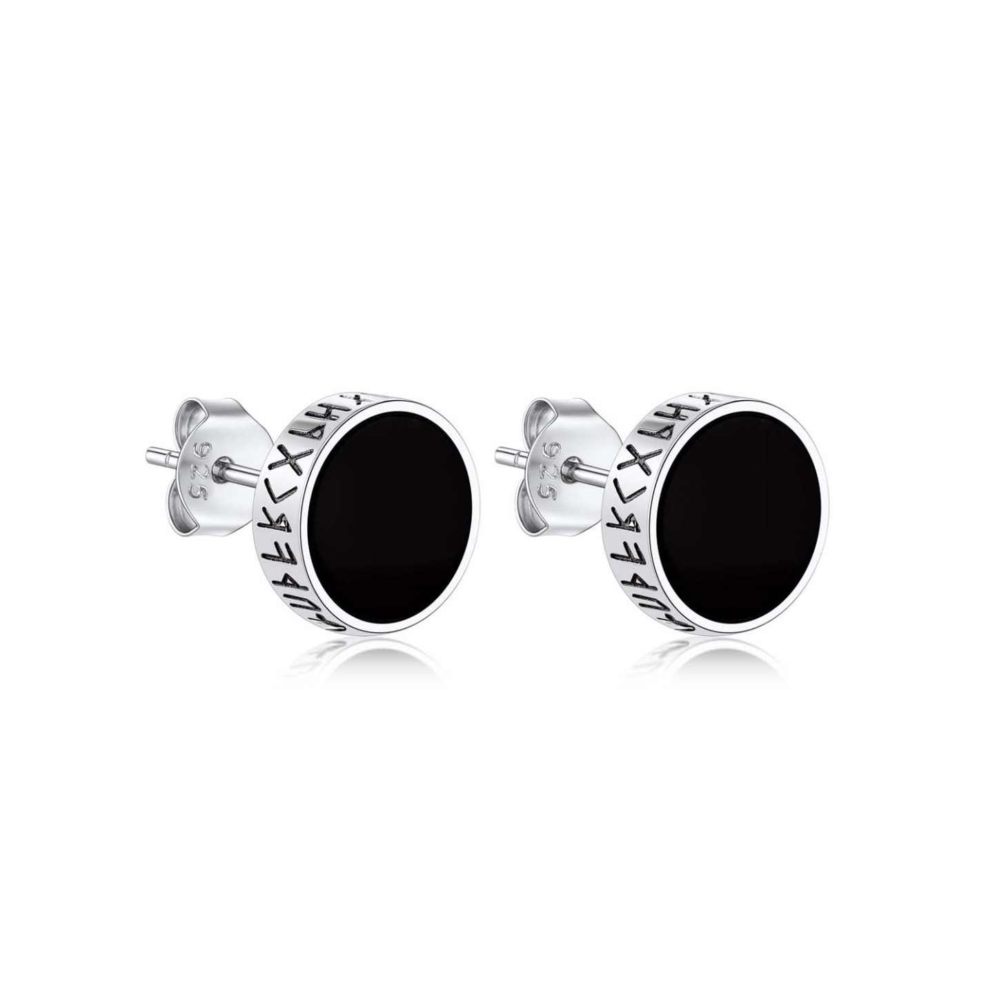 Our Fashion Cool Black Onyx Stud earrings,with 2 designs to choose from: cubic zirconia and viking Rune engraved. All hypoallergenic,comfortable for wearing. 2 colors to choose.