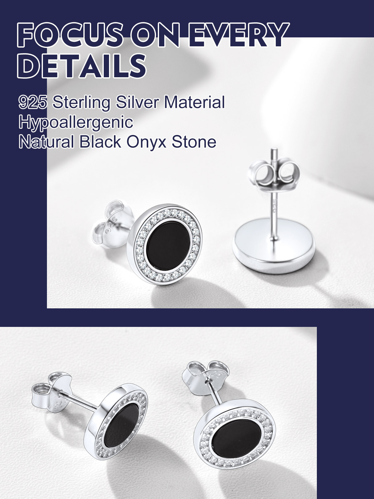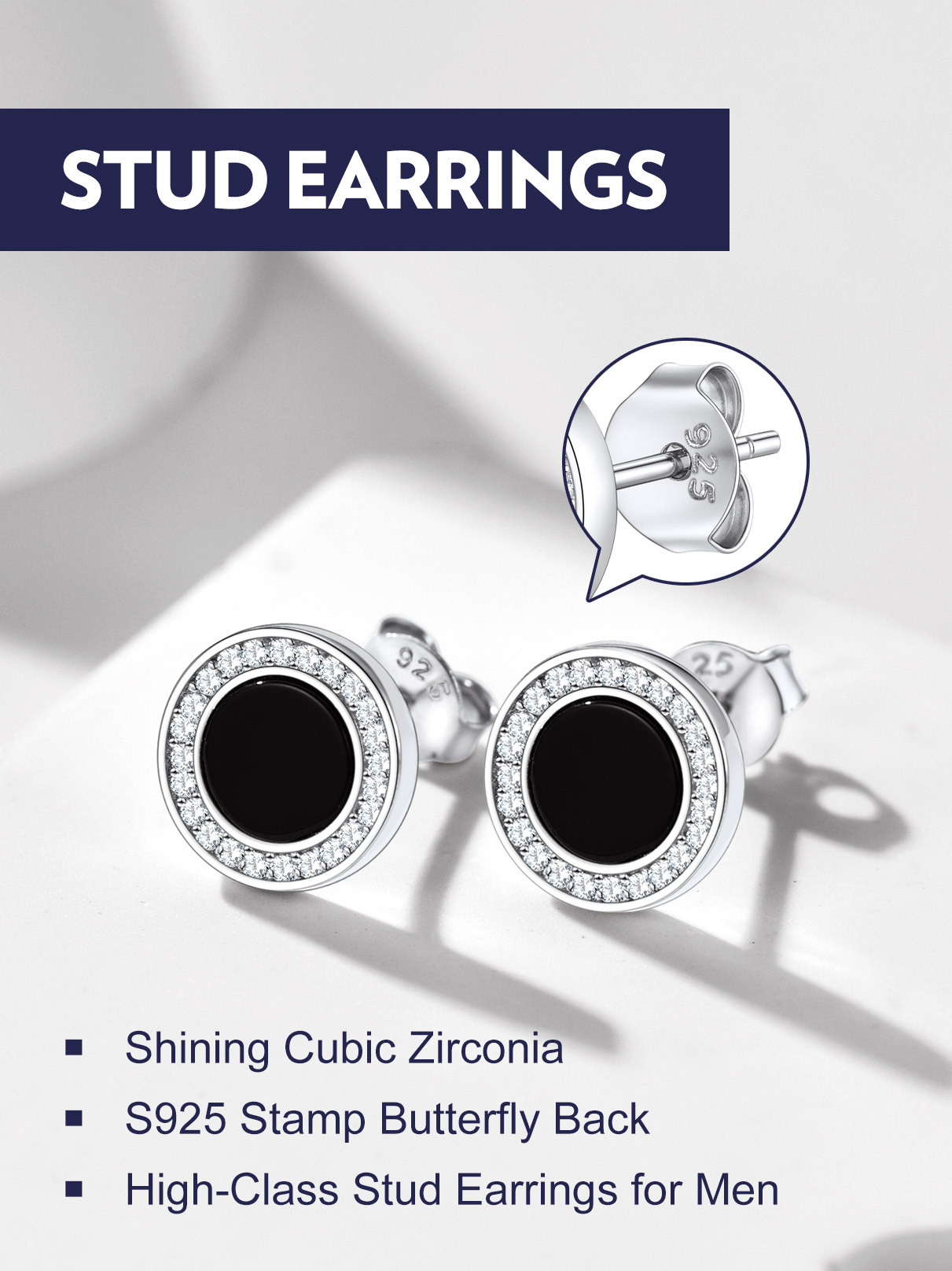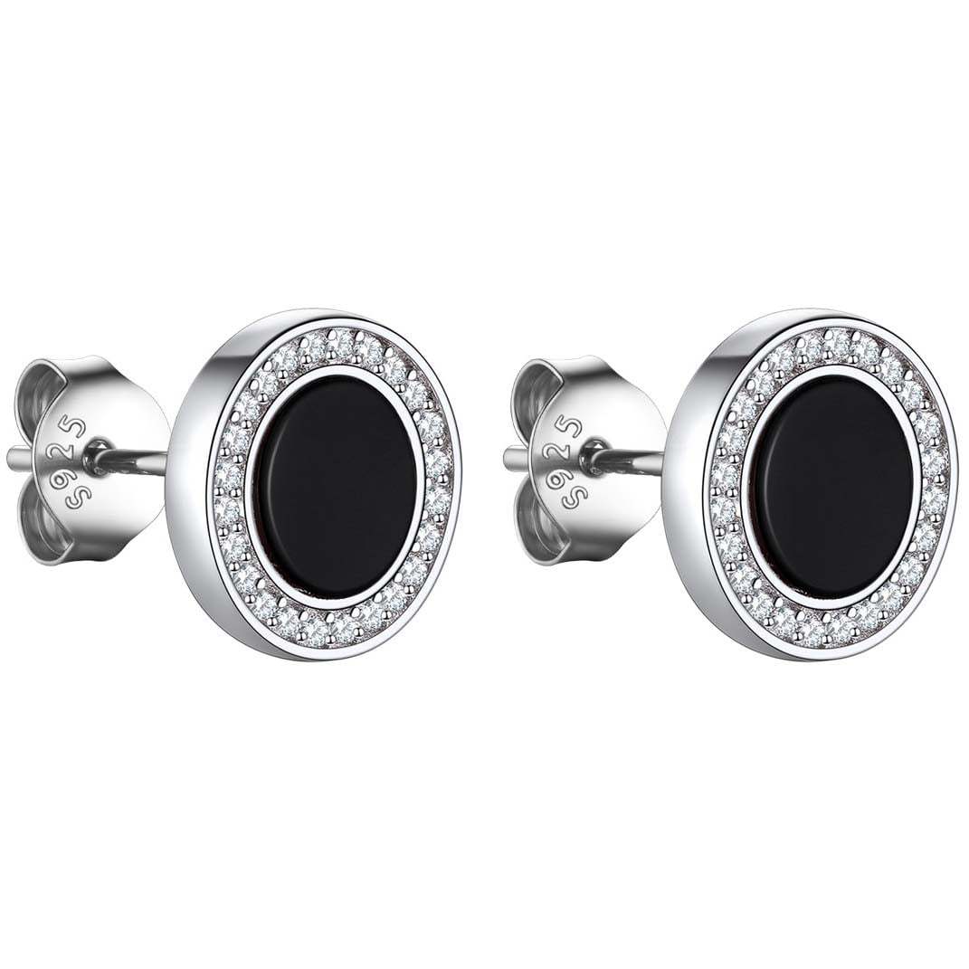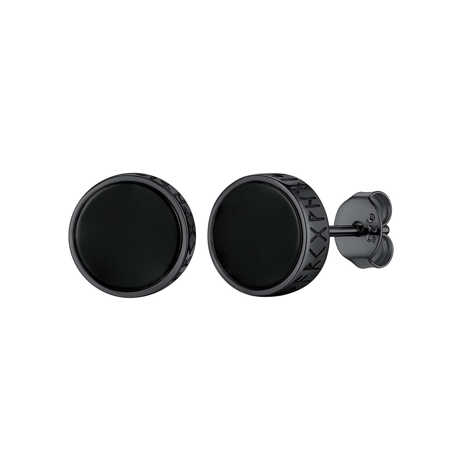 Our Fashion Cool Black Onyx Stud earrings,with 2 designs to choose from: cubic zirconia and viking Rune engraved. All hypoallergenic,comfortable for wearing. 2 colors to choose.