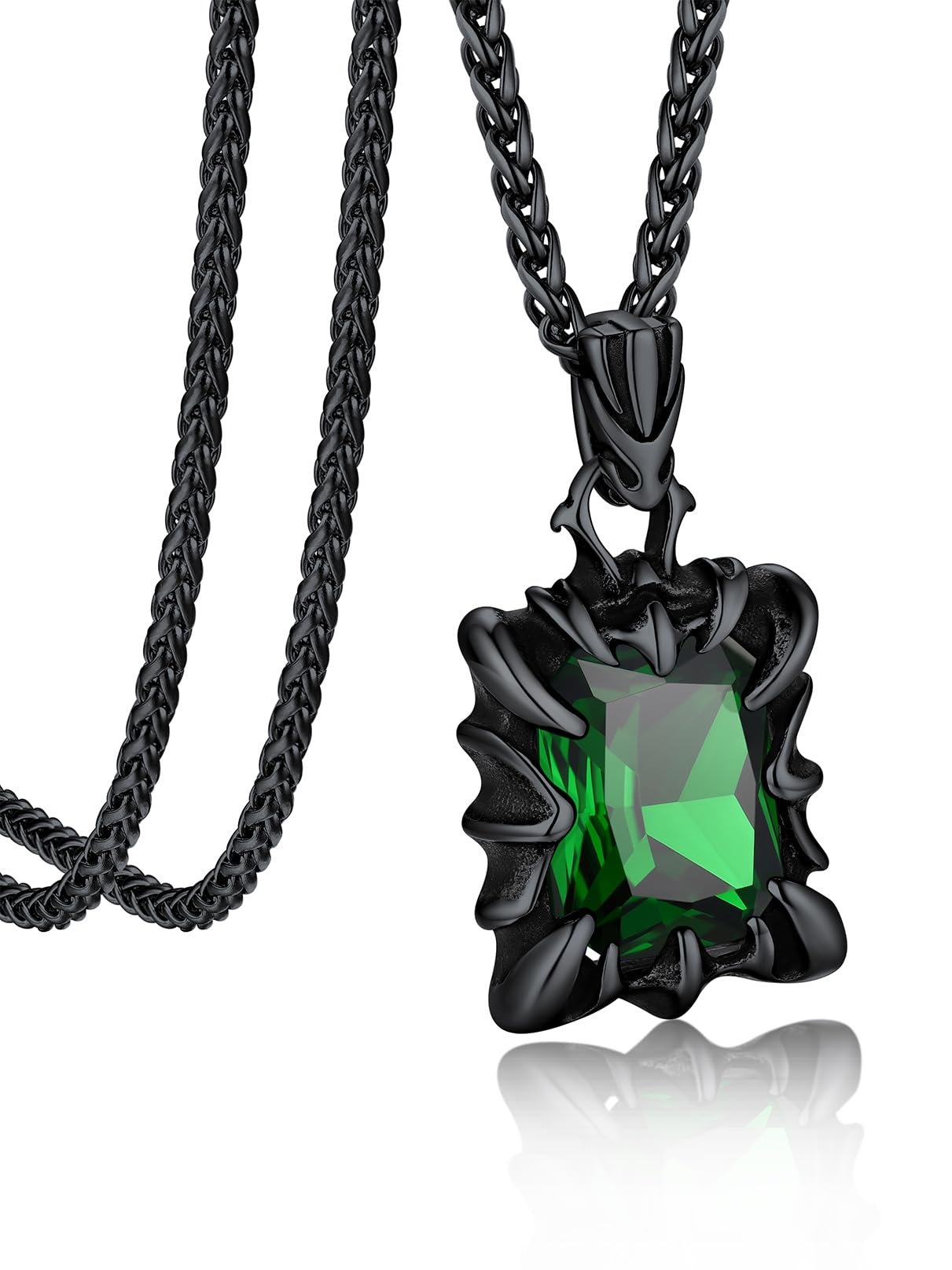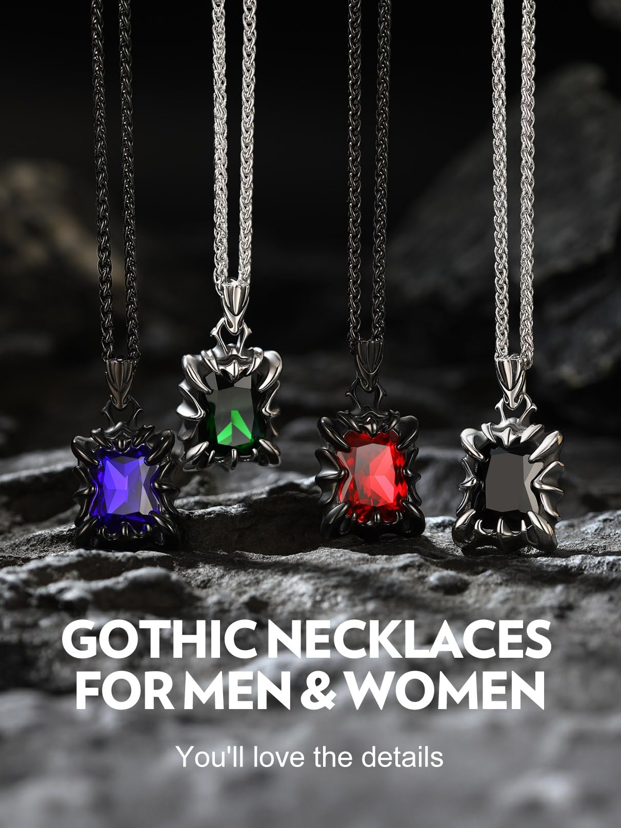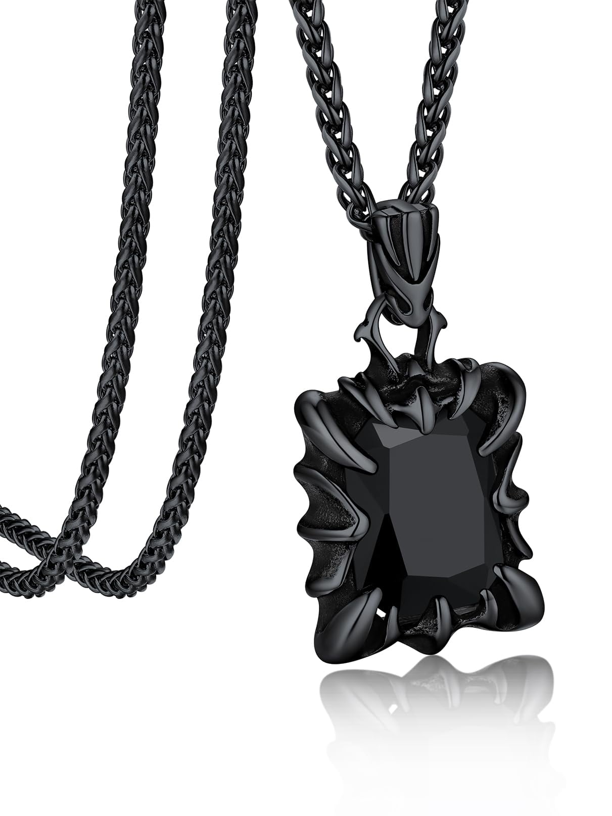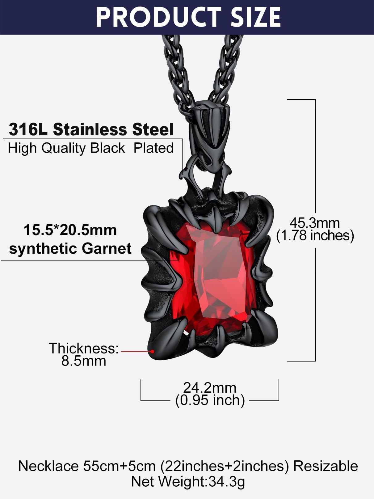 Bandmax Gothic Black Stainless Steel Necklaces for Men Women Dragon Claw Pendant Ruby Stone Vintage Goth Punk Necklace for Gift