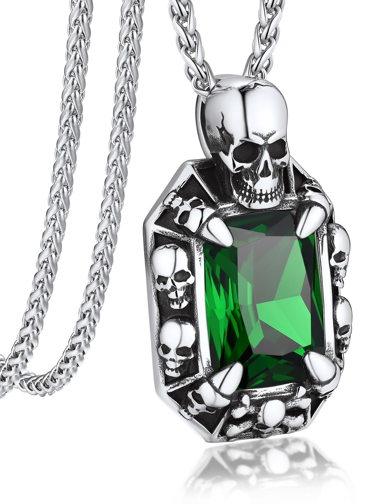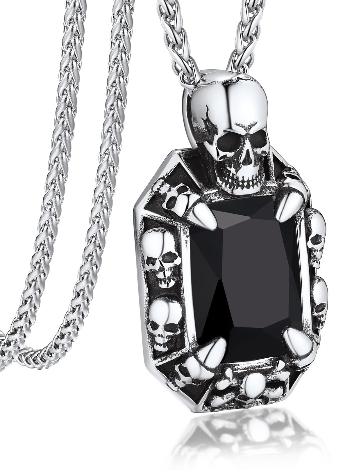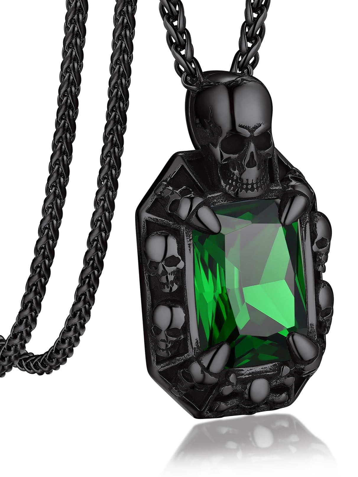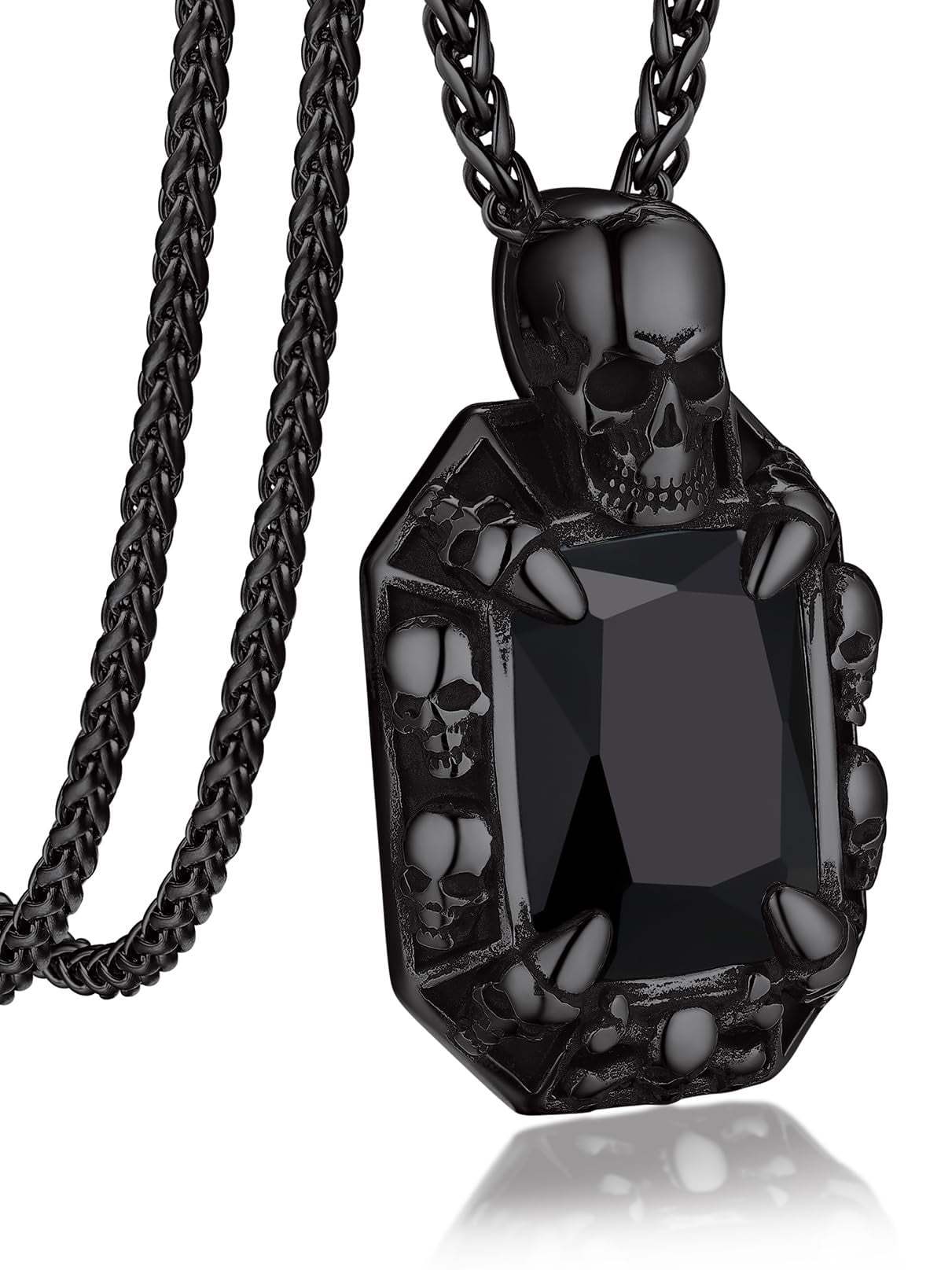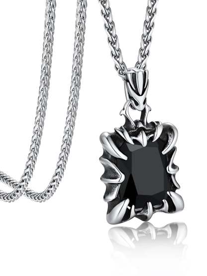 Bandmax Gothic Black Stainless Steel Necklaces for Men Women Dragon Claw Pendant Ruby Stone Vintage Goth Punk Necklace for Gift