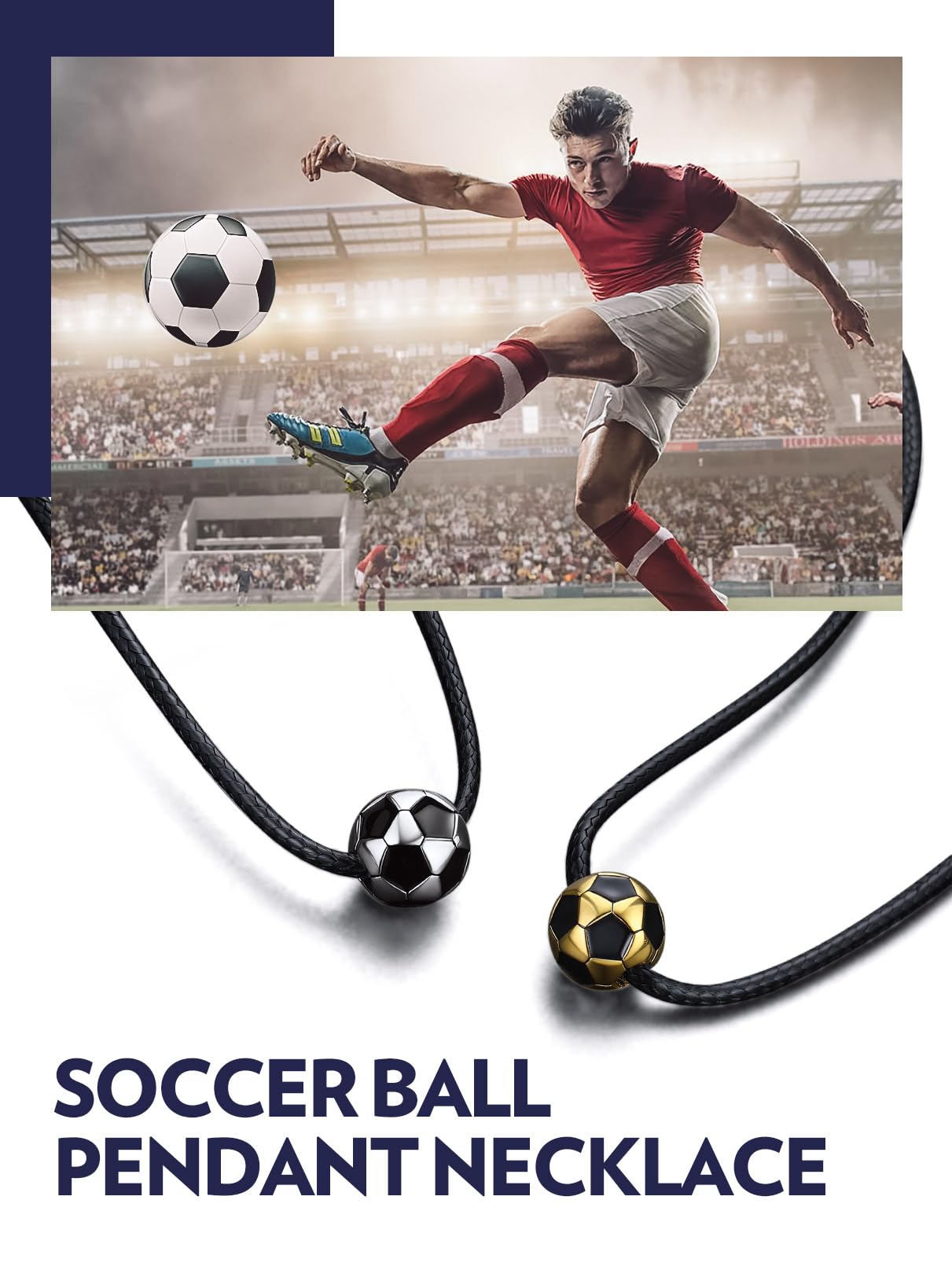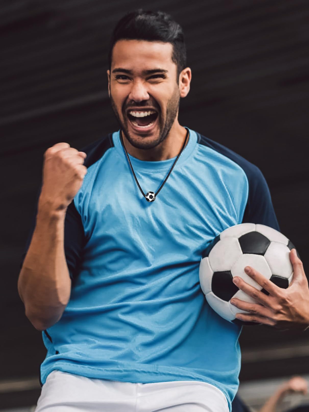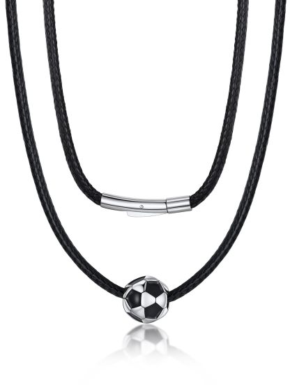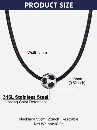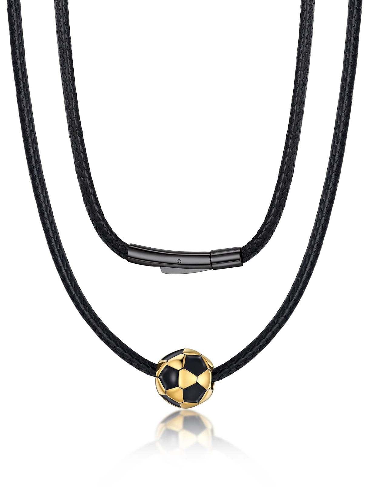 Bandmax Men's Choker Necklaces Soccer Pendant Necklaces Black Wax Rope Sport Pendant Chain Gift for Men Women