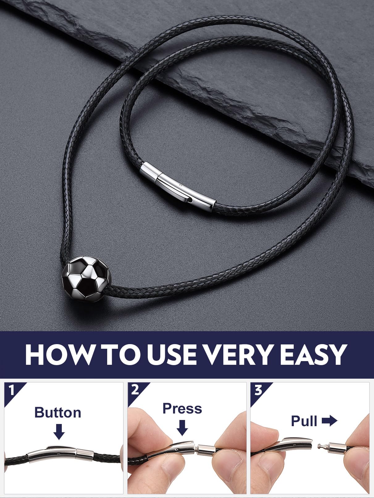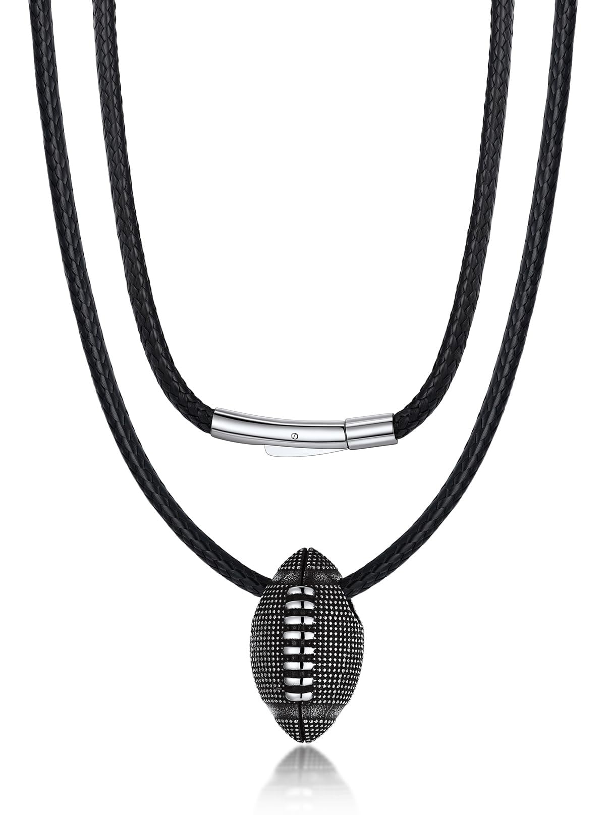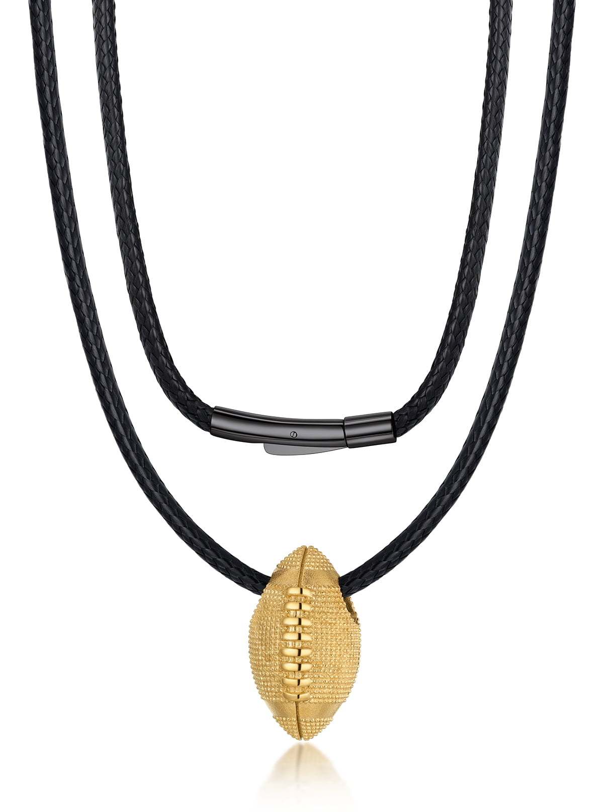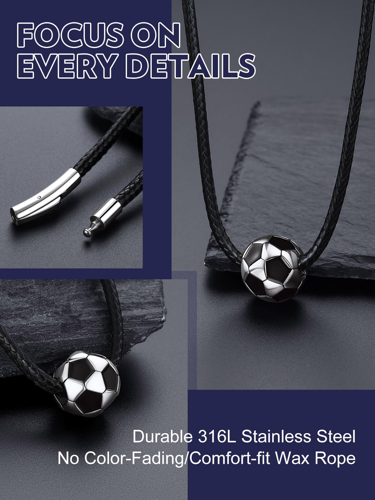 Bandmax Men's Choker Necklaces Soccer Pendant Necklaces Black Wax Rope Sport Pendant Chain Gift for Men Women